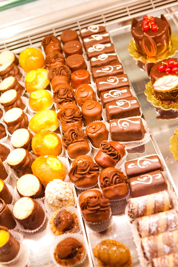 Dolci creazioni di alta pasticceria, nel centro di Milano: i cannoncini alla crema, i bigne’ alla crema, al cioccolato,